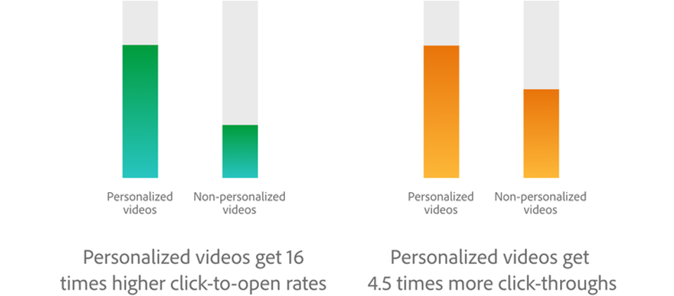 Research from Adobe show higher click-to-open rates and click-throughs for personalised videos versus generic ones. This is because customers want to feel special, and they’re much more likely to engage with correspondence that’s clearly just for them.