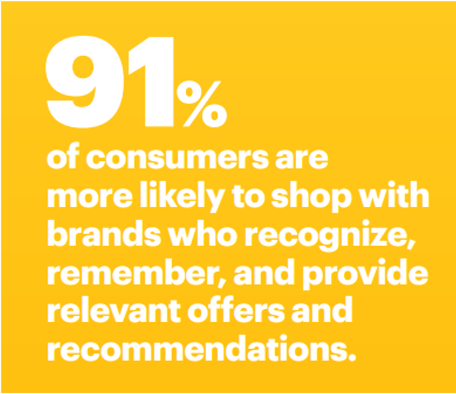 Customers are more loyal to brands that recognize them and make an effort to provide relevant offers.